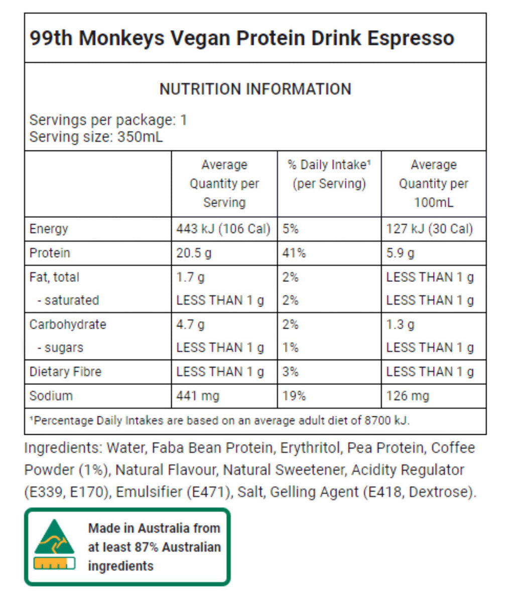 Introducing 99th Monkey’s new range of Plant-Powered Protein Smoothies! On-the-go nutrition, made easy! Our new plant-based protein smoothies are the perfect solution for busy lifestyles. Simply shake and drink. With 20g of protein, less than 1% of sugar or fat, they’re a healthy way to fuel your day!